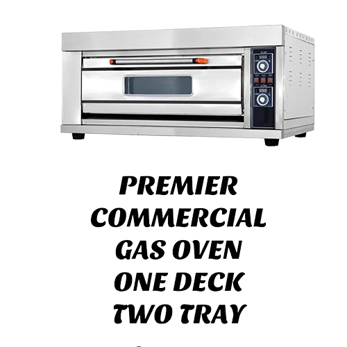 The Premier Commercial Gas Oven One Deck Two Tray is designed for small to medium-sized bakeries. First, it operates on gas, providing efficient heating and even baking, which is perfect for producing bread, pastries, and cakes.