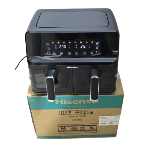 Make healthier cooking easier and more versatile with the Hisense Dual Basket Air Fryer 8.6 L H08AFBK2S1. With a large 8.6 L dual-basket capacity, this air fryer lets you cook two different foods at once — perfect for families, gatherings, or preparing a full meal quickly. Its powerful hot-air circulation cooks food evenly with little to no oil, delivering crispy, golden results without the extra fat of deep frying.