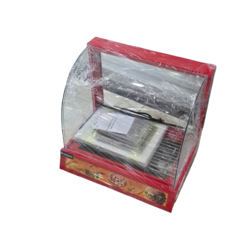 The transparent glass panels enhance product visibility, making it perfect for displaying pastries, snacks, chicken, and other ready-to-eat foods while keeping them warm and appetizing.